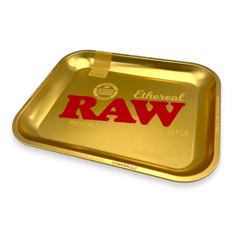 Just in and shining bright! The RAW Ethereal Tray is rolling luxury at its finest. Inspired by the dreamy RAW Ethereal line, this tray is crafted with the highest quality polished metal to feel super light yet look like solid gold, with perfectly curved corners (no creases!). Super sleek, super smooth, made for rollers who like their gear to stand out as much as their smoke sessions.