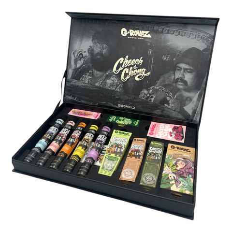 Introducing the best of G-Rollz in collaboration with Cheech & Chong supplied in an all in one premium stylish gift box. The Cheech & Chong Large Gift Box brings together a bundle of wraps, rolling papers, and a pre-rolled cones. A blend of variety and style, this set makes a perfect gift or treat for anyone who wants a ready-to-go rolling collection!