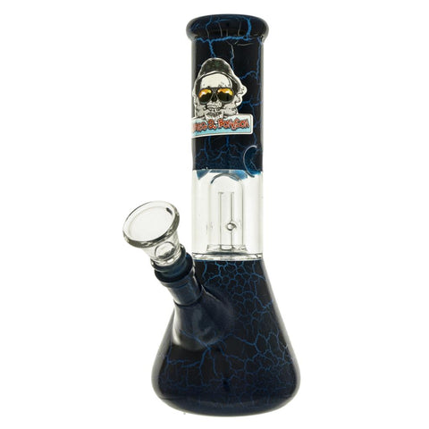 These functional 20cm Glass Waterpipe bongs all feature a vibrant elctro-crackle finish, skull design, ice-pinch, 14mm downtube with built-in herb bowl and clear mid-section that shows off the Mini-Percolator that helps cool down the smoking experience.