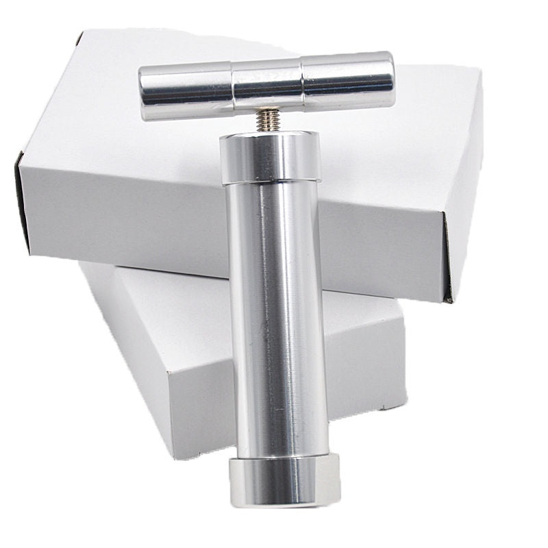 A small entry level Tobaco Press for light-weight compressing of material, this metal tobacco press is approx 10cm in height with an internal diameter around the same size as a 5p coin. Not advised for heavy duty / industrial scale pressing.