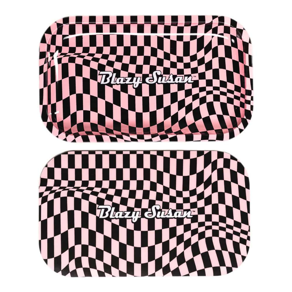 Bored of using the kitchen work surface and an old box to store all your bits?... Check out this Blazy Susan Metal Rolling Trays with a Magnetic Cover - the perfect combo of functionality and style! Decorated with Blazy's famous Trippy Checkers Board design in Retro Pink and Black, this lightweight portable tray is ideal for both at home and on the go and can easily tuck away into a small backpack or handbag!
