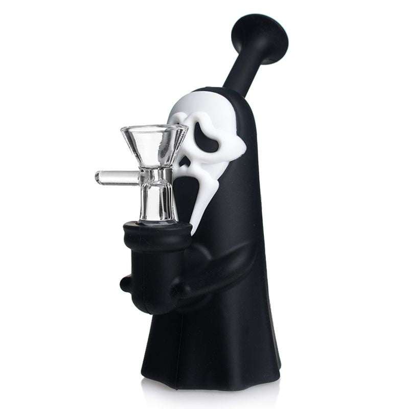 The screaming ghost face charachter is a fearsome and frightning star at everyones favourite Halloween ball, but now it's available as a scaled down fully functioning, cleanable silicone waterpipe with a glass bowl making this a must have accessory for the season of screams!